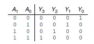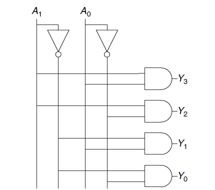 For example A simple decoder with 2 input lines and 4 output lines. Each output line represents one of the possible 2^2 = 4 combinations of the input lines.