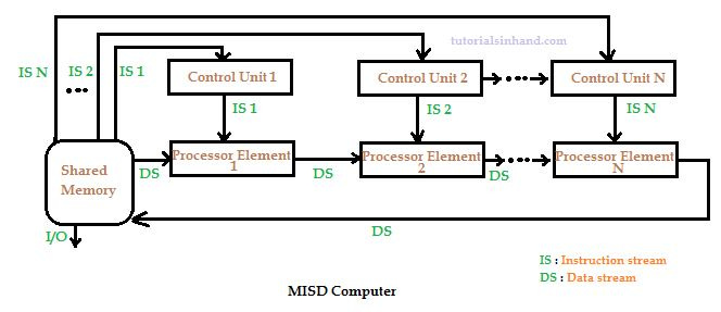 It indicates that multiple instructions are applied to the same set of data. MISD architecture is also known as systolic arrays.