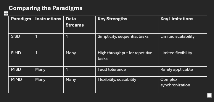 Understanding processing paradigms like SISD, SIMD, MISD, and MIMD is crucial for grasping the evolution of computer architecture. Each paradigm serves unique purposes, from the simplicity of SISD to the flexibility of MIMD. By leveraging the strengths of these paradigms, modern systems achieve unprecedented levels of performance and efficiency, enabling advancements in fields like AI, HPC, and scientific research.